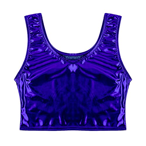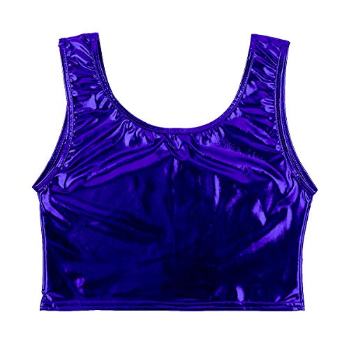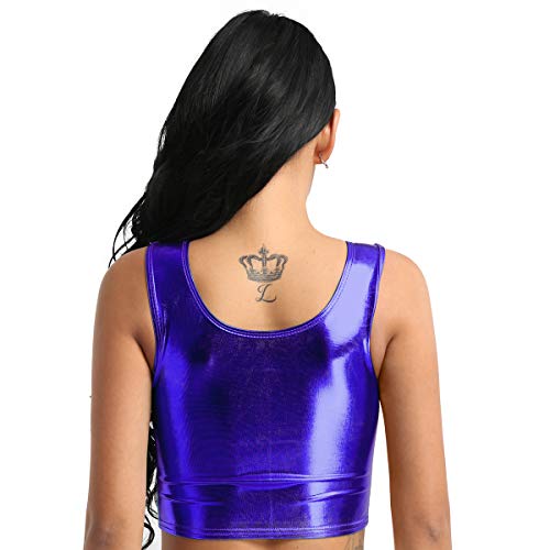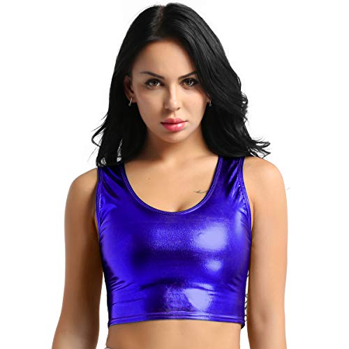dPois Damen Glänzend Crop Top Wetlook Tops Shirt T-Shirt Frauen Ärmellos Tanktops Bauchfrei Oberteile Unterhemd Clubwear Party Kleidung Nachtclub