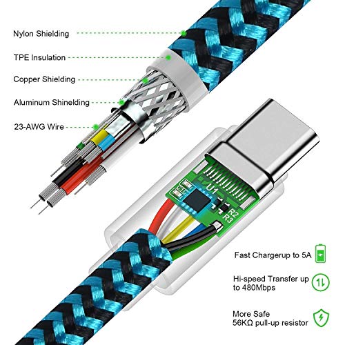 - 1. Super kurze Ladezeit, 5A Schnellladegerät, Datenübertragung und Energie werden 2 in 1 USB-C Kabel