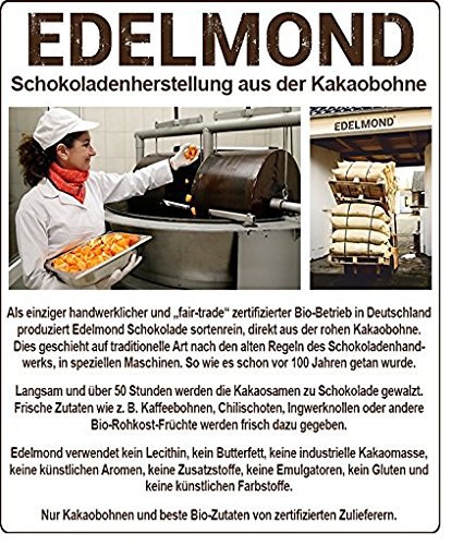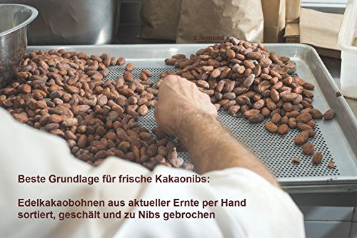 - Beliebter, deutscher Bio Chocolatier: Edelmond als kleiner Schokoladenhersteller: rohe Kakaobohnen werden sortenrein geschält und zerbrochen