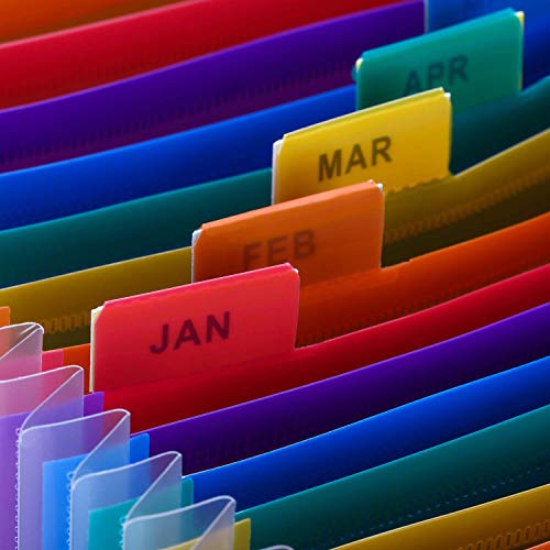 - 【Bunte Farben für Erkennung】Die A4 Sortiermappe hat ein einzigartiges Multifarben-Design. Die kleine farbige Etiketten und Monatstags helfen Ihnen, die gewünschten Dokumenten schnell finden.