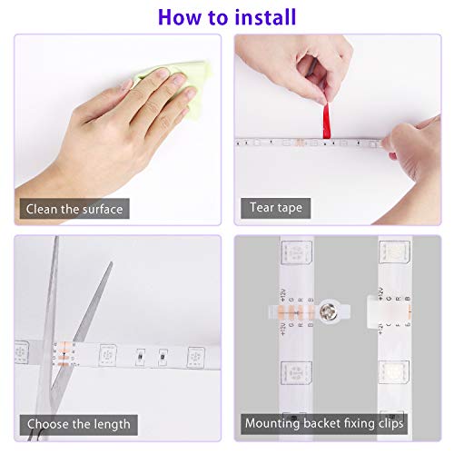 - ★ 【Installation Installation einfach und bequem】 LED-Streifen sind mit einem Selbstklebeband ausgestattet. Entfernen Sie einfach die Abdeckung vom Klebeband und kleben Sie. aber du musst die Stelle reinigen, an der du die Bänder kleben willst. Wir bieten auch 20 feste Knöpfe für eine bessere Befestigung des LED-Bandes an. Der Lichtbalken kann entlang der Schnittmarkierung in zwei Streifen beliebiger Länge geschnitten werden. Sie benötigen Steckverbinder, um sie nach dem Schneiden zu verbinden.