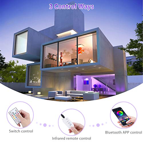 - ★ 【Millionen von Farben + 3 Möglichkeiten zur Steuerung】Bluetooth LED Lichtleisten werden mit einem Bluetooth-Controller, einer Infrarot-Fernbedienung und einem kabelgebundenen Controller geliefert. Dieses LED-Lichtband unterstützt Millionen von Farben. Durch Drücken der entsprechenden Tasten auf der mitgelieferten Fernbedienung können Sie die Farbe Ihrer Wahl auswählen. Und Sie können mit der App sogar mit Ihren eigenen Farben basteln.