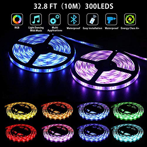 Bluetooth LED Streifen Kit (2x5m), VITCOCO LED Strip Farbwechsel selbstklebend LED Lichtleiste, Sync mit Musik, RGB 5050, mit Kontroller 23 Tasten Fernbedienung 12V Netzteil für Haus, Party Dekoration